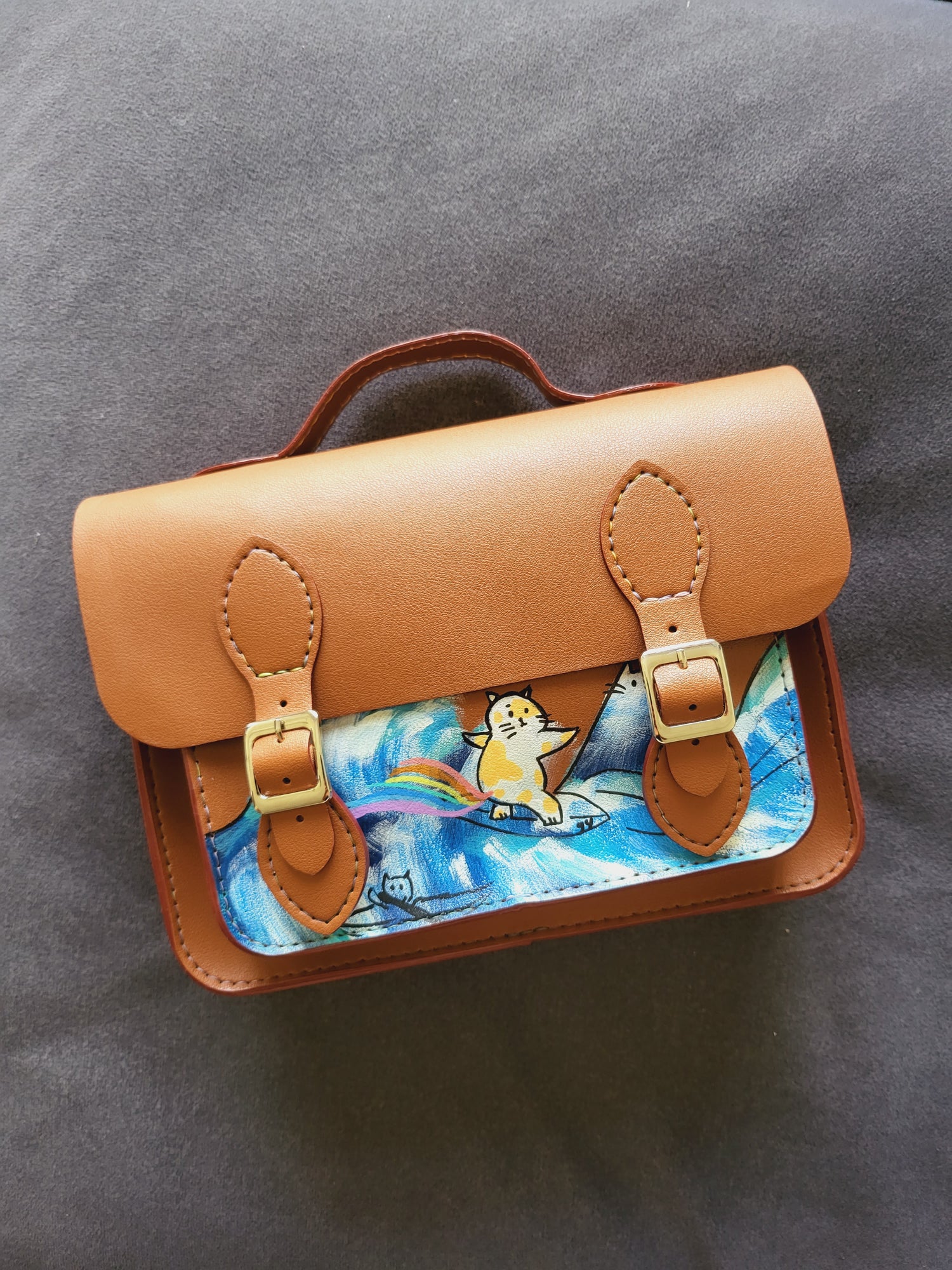 Shop the collection of painted handmade pouches in whimsical cat designs!