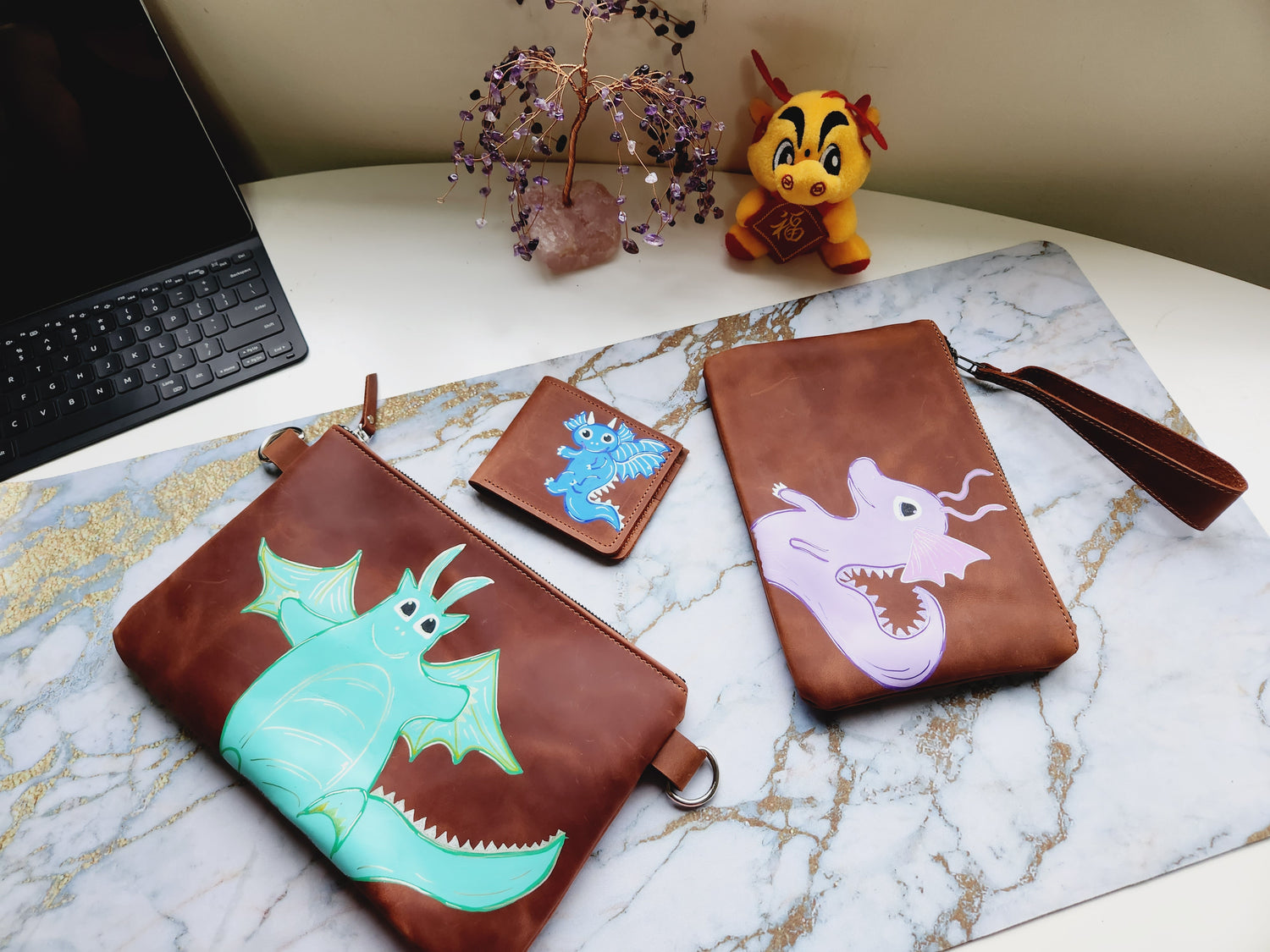 Explore this collection of handcrafted and painted Leather and Vegan Leather products...