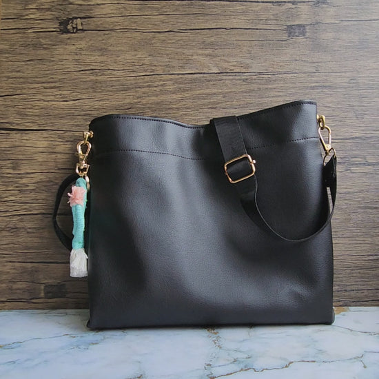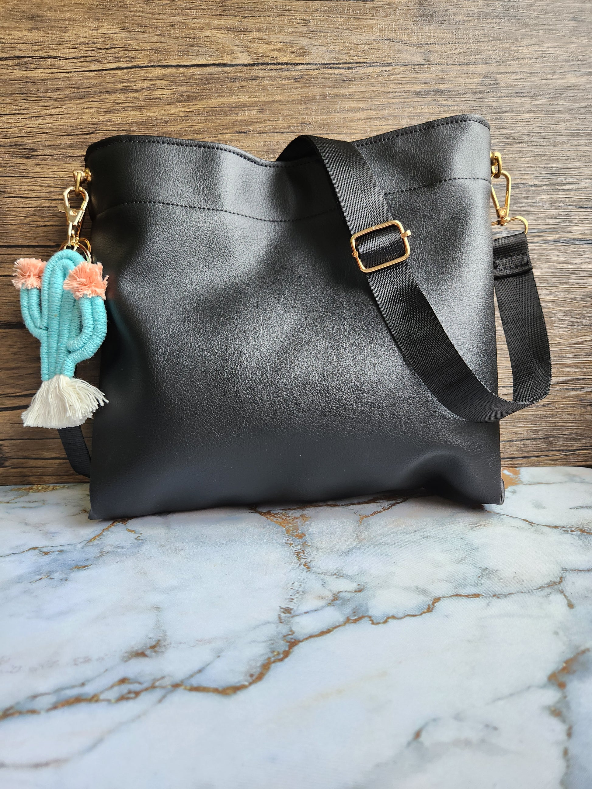 Comes with a canvas adjustable bag strap, a cactus macramé bag charm, and dust bag.