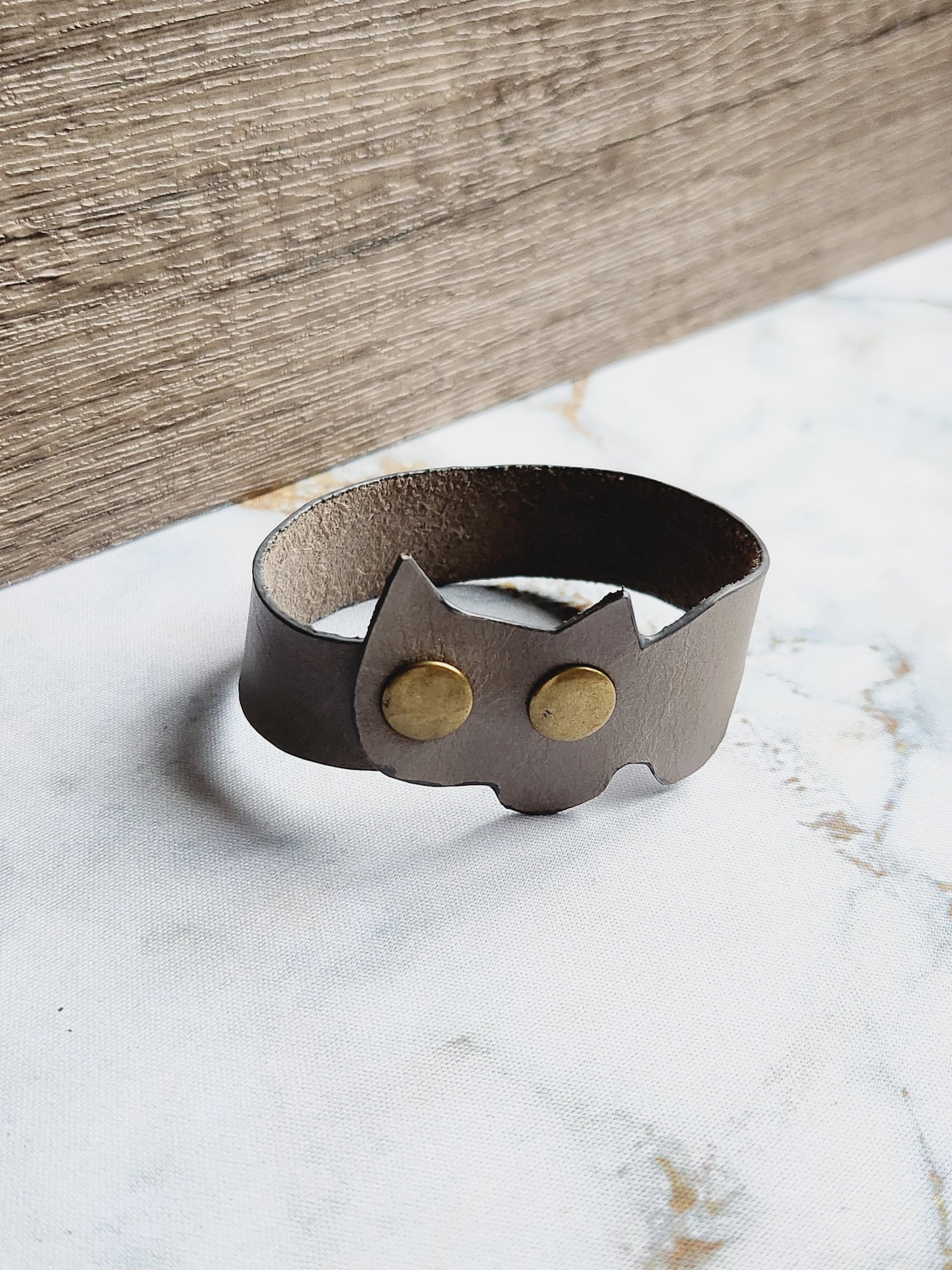 Fashioned using using surplus smooth chrome tanned leather from other projects, this cat bracelet will surely turn head and start conversations!