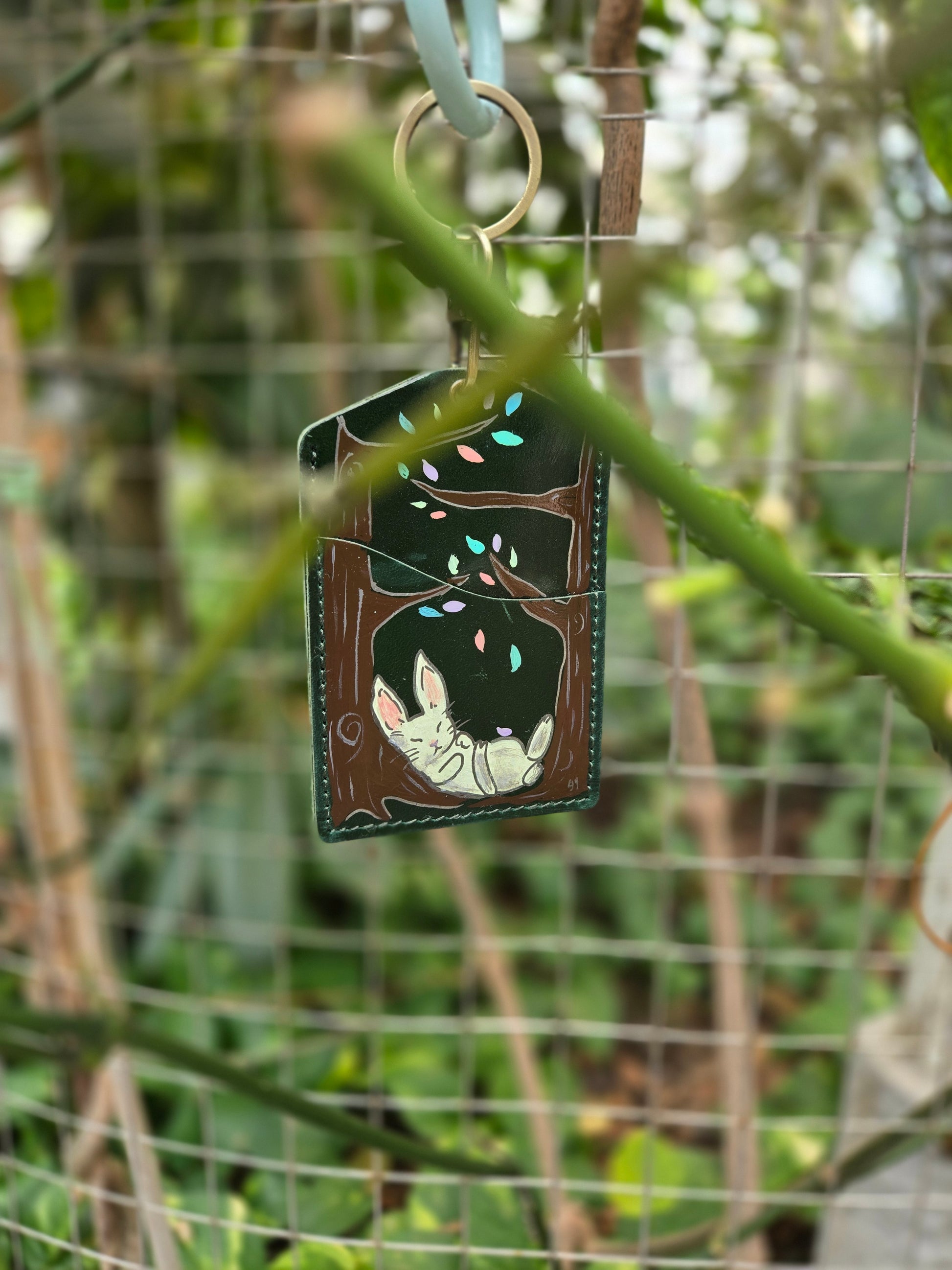 Into the Woods Rabbit Green Leather Lanyard Card Holder