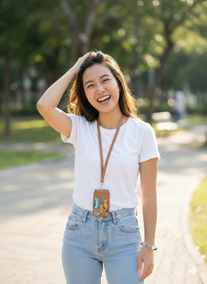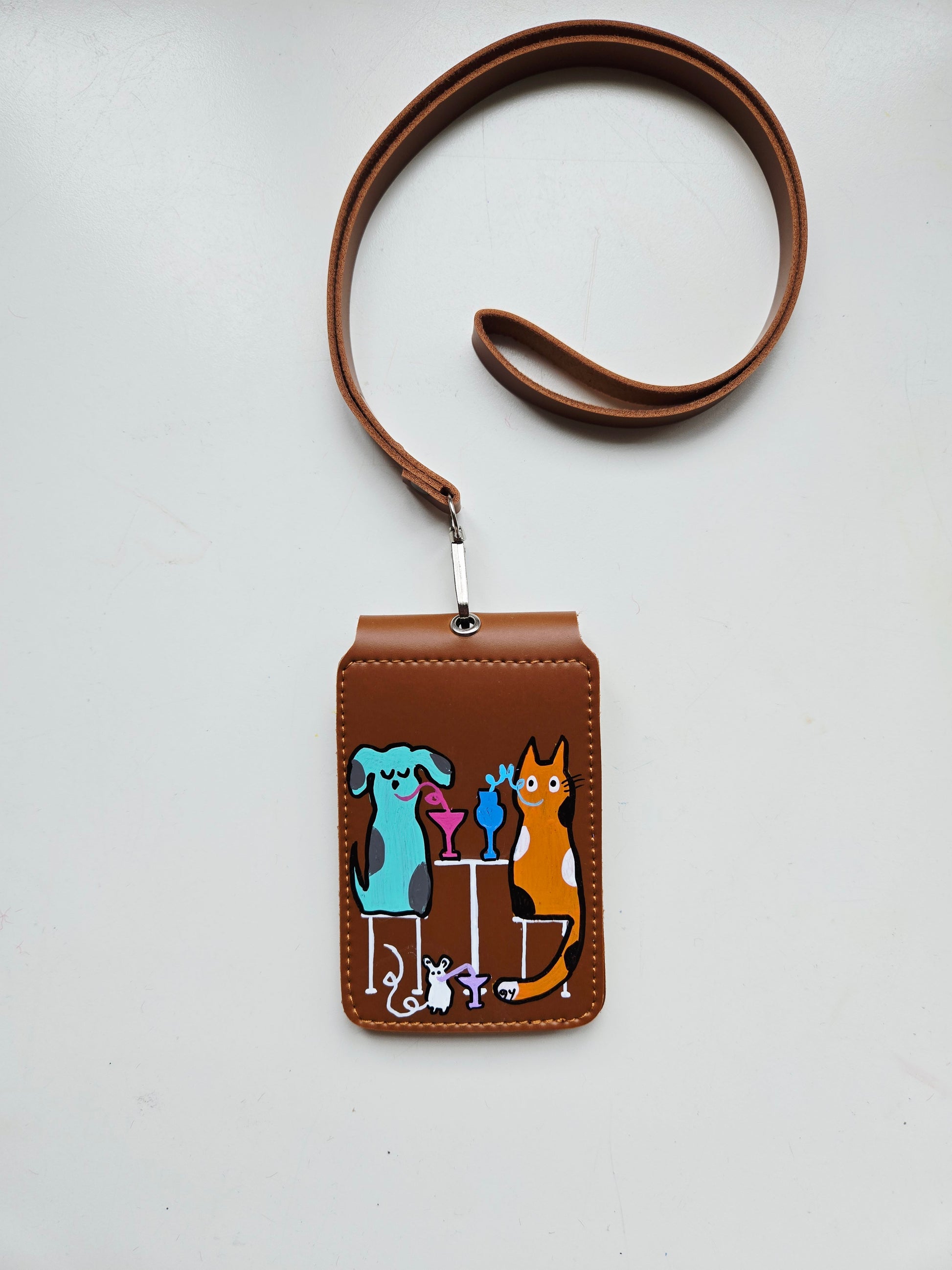 Hand crafted and painted, this Tan Brown card holder can be used as a lanyard, or a bag/luggage tag. It is made from chrome tanned leather and is practically scratch resistant!