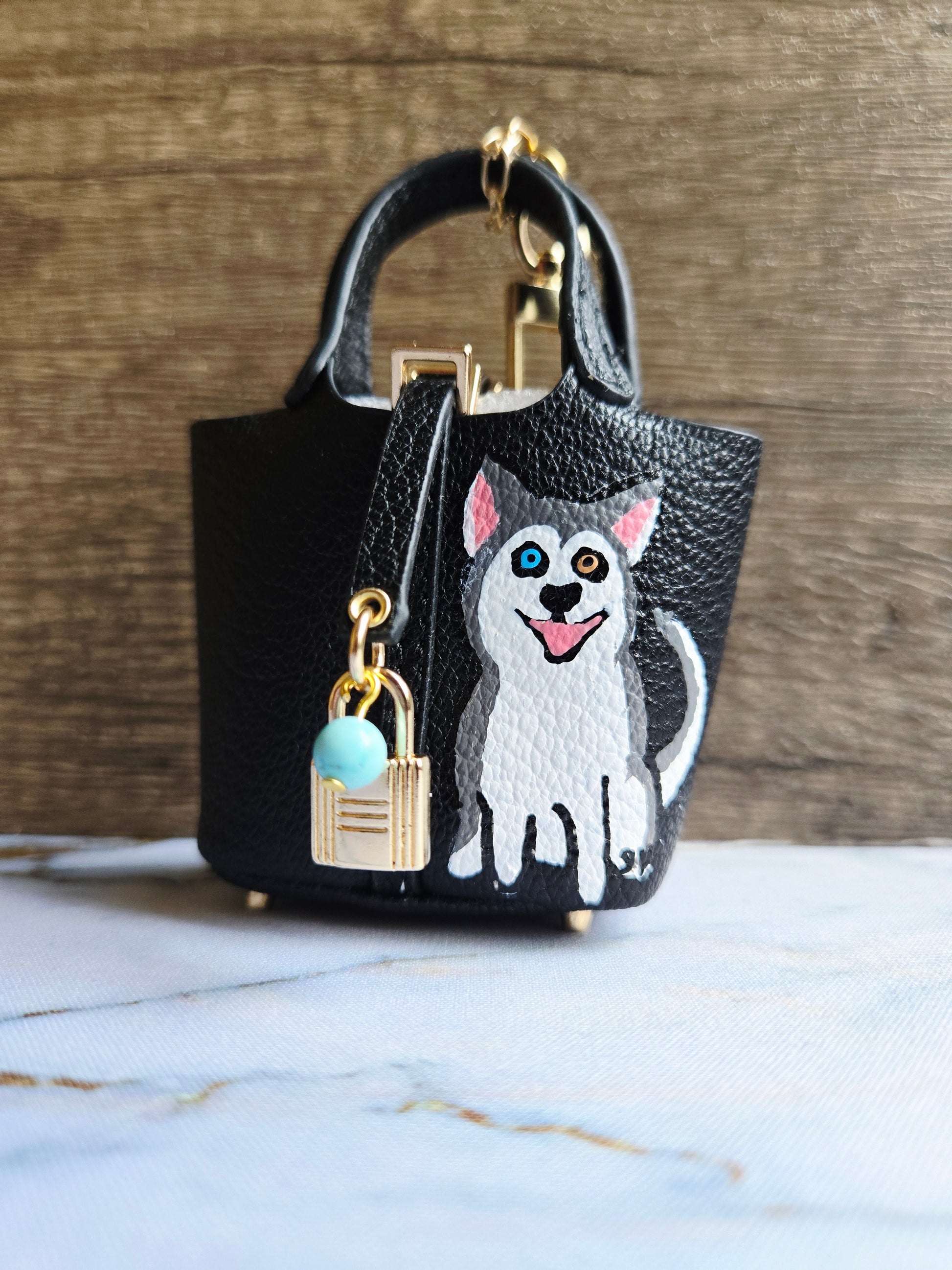 A Bag on a Bag?! Painted Husky doggy bag charm, in Black Noir. Perfect as a crystal amulet bag. Can be used as a necklace too.