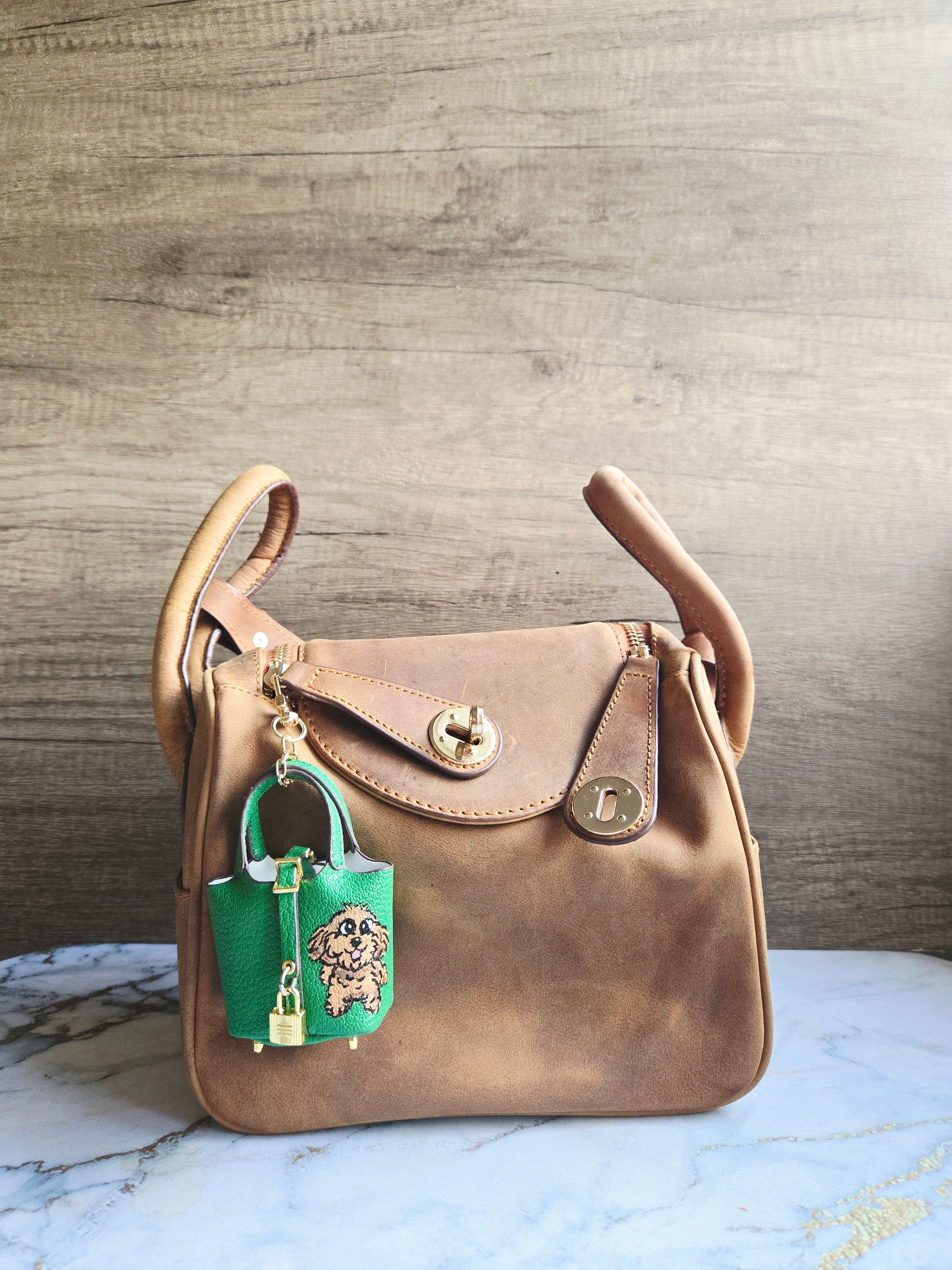 A Bag on a Bag?! Painted Labradoodle doggy bag charm, in Green Bambou. Perfect as a crystal amulet bag. Can be used as a necklace too.